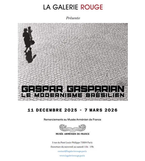 Sur proposition du Musée arménien de France et à l’occasion de l’Année du Brésil en France, la Galerie Rouge à Paris présente une exposition du photographe arméno-brésilien, Gaspar Gasparian (1899-1966), dont le vernissage a eu lieu le 11 décembre 2025 en présence de son fils Gaspar Gasparian junior. Présentation de l’exposition Gaspar Gasparian à la…